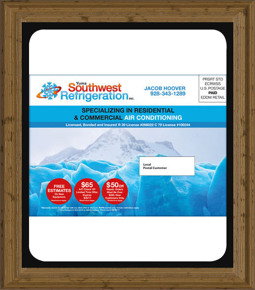 6.5" x 9". EDDM Eligible. Please check with local post office on sizing. Thick, Glossy Paper or Matte Finish. includes 500 Full color, front and back printed postcards, with custom graphic design. They will be shipped to your house.
